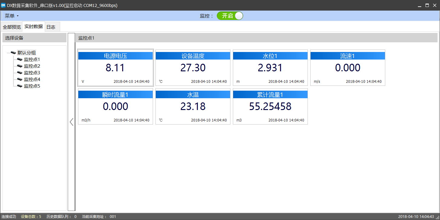 德希科技針對(duì)有人值守的地區(qū)專門開發(fā)區(qū)一套采集軟件,專門用于水庫、閘壩、電站的流量數(shù)據(jù)采集、歷史數(shù)據(jù)存儲(chǔ)、報(bào)表導(dǎo)出。該套軟件免費(fèi)提供客戶使用,將壁掛式的智能化儀表數(shù)據(jù)直接接入電腦,方便值班人員隨時(shí)查看數(shù)據(jù)。